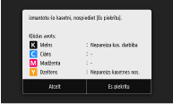 Lai turpinātu lietot tonera kasetni, nospiediet <Es piekrītu>. Izvēlieties šo opciju, nav garantēta iekārtas darbība.