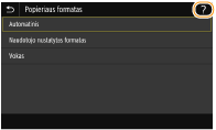 Kai kuriuose ekranuose paspaudę <?> mygtuką galite peržiūrėti funkcijų aprašus arba jų valdymą.