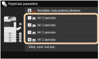 Jeigu užregistruojate dažnai naudojamo popieriaus formatą naudodami mygtukus <S1>–<S3>, galite iškviesti juos vienu lietimu. Pasirinktinio popieriaus formato registravimas