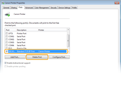 Pasirinkite prievadą, kurį norite panaikinti, tada spustelėkite [Delete Port].