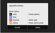 Jei norite pakeisti dažomųjų miltelių kasetę, paspauskite <Atšaukti>.