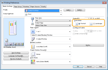 Tvarkyklės ekrane [Basic Settings] nustatykite tokią pačią [Orientation], kokią nustatėte atlikdami 1 veiksmą.