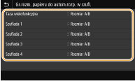 Dla każdej szuflady na papier należy zarejestrować rozmiar papieru, który będzie wykrywany automatycznie. Ustawienie to jest przydatne, gdy rozmiar papieru umieszczonego na podajniku został określony dla każdej szuflady na papier. Można także ustawić automatyczne wykrywanie rozmiaru papieru dla tac uniwersalnej.