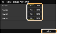 Este item é eficaz quando a opção <Todos os Tamanhos> está selecionada em <Grupo Tam. Papel p/ Rec. Auto na Gaveta> (Definir o tamanho de deteção automática da gaveta para papel) e a opção <Automático> está selecionada em <Tamanho do Papel> (Especificar o tamanho e o tipo de papel colocado na gaveta para papel).