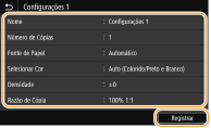 Verifique os detalhes das definições que pretende registar e selecione <Registrar>.