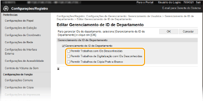 Se a caixa de verificação estiver selecionada com a gestão de ID de departamento ativada, pode copiar a preto e branco sem introduzir a ID e o PIN corretos. Desmarque a caixa de verificação para solicitar a introdução de uma ID e de um PIN.