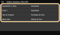 Se existirem vários tipos de ficheiros, selecione <Arquivos JPEG/TIFF> ou <Arquivos PDF>.