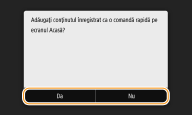 Dacă selectaţi <Da>, se afişează un mesaj. Verificaţi mesajul, apoi selectaţi <OK>. Combinaţia de setări înregistrată este adăugată la ecranul Pornire ca buton pentru comandă rapidă.