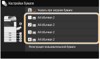 Если кнопкам <S1>–<S3> назначены часто используемые форматы бумаги, то требуемый формат бумаги можно задать одним нажатием соответствующей кнопки. Регистрация пользовательского формата бумаги