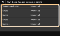 <Кассета 3> и <Кассета 4> отображаются только в том случае, если установлен дополнительно приобретаемый cassette feeding unit.