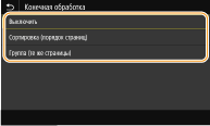 При создании двух и более копий документа, загруженного в устройство подачи, готовые копии можно сортировать или группировать. Выберите «Сортировка», чтобы напечатать копии в порядке следования страниц. Выберите «Группировка», чтобы напечатать партии каждой страницы (10 копий первой страницы, 10 копий второй страницы и т. д.).