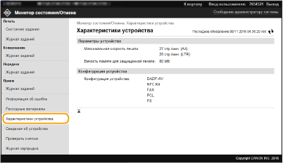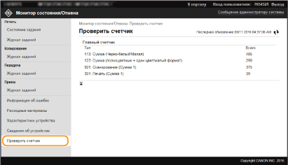 Нажмите [Номер задания] на документах, печать которых была приостановлена, или для которых используется безопасная печать, чтобы просмотреть подробную информацию. Можно просмотреть имя пользователя и количество страниц печатаемого документа.