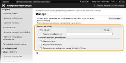 *Возможность импорта адресной книги на другой аппарат зависит от модели. На одинаковых моделях можно выполнять импорт/экспорт данных настроек аппарата.
