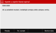 Vypnutie zariadenia) a počkajte aspoň 10 sekúnd po vypnutí displeja dotykového panela a indikátorov. Potom napájanie znova zapnite (