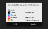 Ak chcete pokračovať v používaní kazety s tonerom, stlačte tlačidlo <Súhlasím>. Ak vyberiete túto možnosť, operácia zariadenia nie je zaručená.