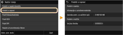 Spremenite lahko različne nastavitve zaslona, na primer jezik uporabniškega vmesnika: <Nastavitve prikaza>