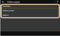 Če velikost papirja, ki jo pogosto uporabljate, registrirate za gumbe od <S1> do <S3>, lahko to velikost izberete z enim dotikom. Registracija velikosti papirja po meri