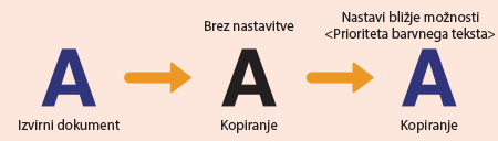 Prilagoditev vrednosti za reprodukcijo barve besedila v barvnih dokumentih
