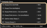 Ločeno lahko preverite skupno število strani barvnih izpisov in črno-belih izpisov. Te vsote vključujejo fakse, poročila in sezname, poleg tega pa še kopije in izpise podatkov iz računalnikov.