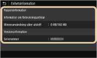Visar enhetens status, såsom mängden papper eller återstående mängd i tonerkassetterna.