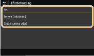 <Sortera (sidordning)> eller <Grupp (samma sidor)>