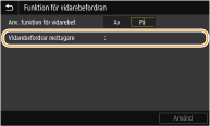 Välj <På> i <Anv. funktion för vidarebef.>.