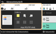 Skriver ut data från flera sidor bilddata på samma sida av ett pappersark. Du kan ange antalet sidor som ska skrivas ut på en sida av ett pappersark. Till exempel, för att skriva ut fyra sidor på ena sidan av ett pappersark, väljer du <4 på 1>.