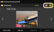 Om du väljer <Datum/tid (stigande)> eller <Datum/tid (fallande)> sorteras filerna baserat på ändringsdatum och tid.