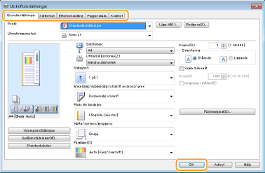 Ange utskriftsinställningarna efter behov och klicka på [OK].