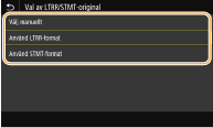 Välj <Välj manuellt>, <Använd LTRR-format> eller <Använd STMT-format>