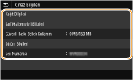 <Güvenli Baskı Bellek Kullanımı>Güvenliği sağlanmış belge verilerinin kaydedilmesi için geçerli olarak kullanılan bellek miktarını görüntüler.
