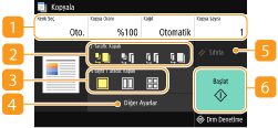 Ana Ekran'da <Kopyala> öğesini seçtiğinizde, Kopyalama Temel Özellikleri ekranı görüntülenir.