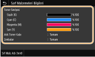 Kalan toner kartuşu, atık toner kartuşu ve zımba miktarını kontrol etmek için aşağıdaki yordamı kullanın.