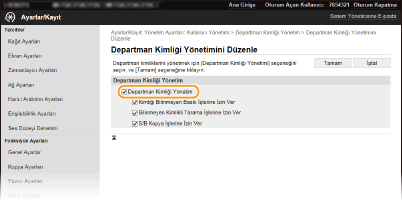 Departman Kimliği Yönetimini etkinleştirmek için onay kutusunu seçin. Departman Kimliği Yönetimini kullanmak istemiyorsanız, onay kutusunu temizleyin.