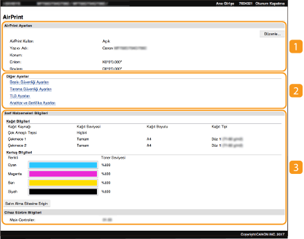 Uzak Kullanıcı Arabiriminden makineyi ayarlarken gerçekleştirilecek temel işlemler hakkında bilgi için bkz. Uzak Kullanıcı Arabiriminden Menü Seçeneklerini Ayarlama.