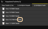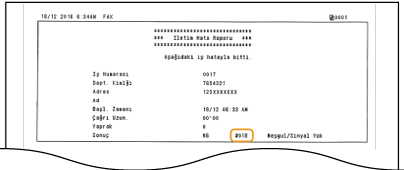 Yazdırmanın başarısız olması veya faks ya da taranan bir orijinalin gönderilememesi veya alınamaması gibi bir hata oluştuğunda, ilgili hata kodu bir raporda veya iş günlüğü ekranında üç basamaklı sayı şeklinde görüntülenir. Her hata kodu için nedenleri ve çözümleri öğrenmek için aşağıdakileri kontrol edin. Rapordaki bilgiler ve hata raporunu yazdırma bilgileri için bkz.