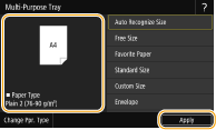 Перевірте розмір і тип паперу, потім виберіть <Apply>.