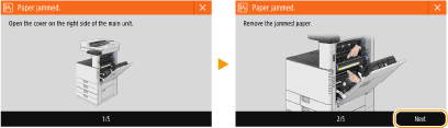 Якщо натиснути кнопку <Close> на екрані, який показує наявність зминання паперу, може вдатися продовжити виконання операцій і вказати параметри, не усуваючи зминання паперу одразу.