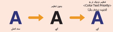 تنظیم مقادیر برای بازتولید رنگ متن در اسناد رنگی