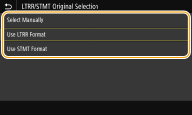 زمانی که اسناد اصلی LTRR یا STMT را روی صفحه شیشه ای قرار می دهید، زمان خواندن، صفحه تعیین اندازه سند اصلی ظاهر می شود. <Use LTRR Format>