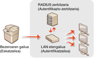 Eragiketa-panela erabilizGaitu edo desgaitu IEEE 802.1X autentifikazioa hemen <Menua>, Etxea pantailan. <Erabili IEEE 802.1X>