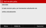 Zenbaki errore-kodea bistaratzen da pantailaren ukimen-panelean