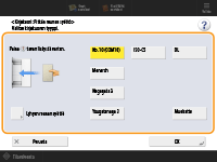 painike, johon kirjekuorityyppi on tallennettu <OK>. Monitoimitason usein käytetyn paperikoon ja -tyypin tallentaminen |