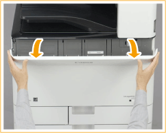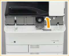 Pitele värikasetin vaihtoaukon kannen vasenta ja oikeaa puolta ja avaa se vetämällä kantta itseesi päin. Vaihtoaukon kansi (pieni kansi) avataan vaihdettavan väriaineen kohdalla.