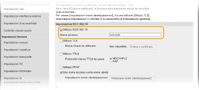 Selezionare la casella di controllo [Utilizzo IEEE 802.1X] e immettere il nome di accesso nella casella di testo [Nome accesso].