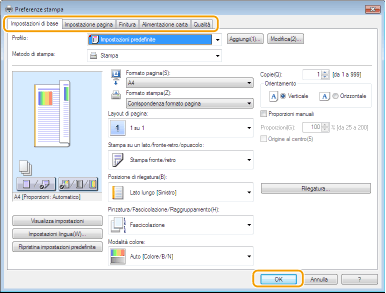 Specificare le impostazioni di stampa necessarie e fare clic su [OK].