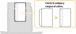 En esta sección se describe cómo cargar sobres en la orientación deseada, así como los procedimientos que debe seguir antes de cargar sobres. Para consultar una descripción del procedimiento general para cargar sobres en el casete de papel o en la bandeja multiuso, consulte Cargar papel en el casete de papel o Cargar papel en la bandeja multiuso. |