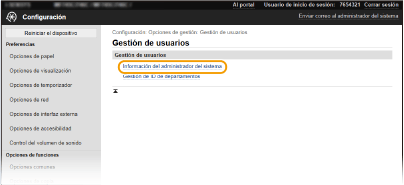 Algunas de las opciones solo pueden cambiarse si ha iniciado sesión en el Modo de administrador del sistema.