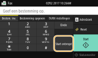 Als u ontvangen documenten op beide zijden van het papier wilt afdrukken: <Afdrukken op beide zijden> Als u aan de onderzijde van ontvangen documenten gegevens wilt afdrukken zoals de datum en het tijdstip van ontvangst: <Voettekst RX-pagina afdrukken> Als u wilt blijven afdrukken wanneer de toner bijna op is: <Door. m afdr. bij lege cart.> |