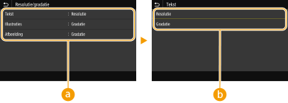 Geef de verwerkingsmethode voor het reproduceren van gradatie op. <Hoog 2> geeft een fijnere gradatie dan <Hoog 1>.